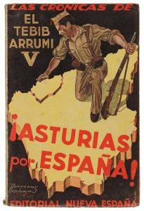 1938. TEBIB ARRUMI: ¡ASTURIAS POR ESPAÑA! (SEPTIEMBRE-NOVIEMBRE 1937). LAS CRONICAS DE EL TEBIB ARRUMI V. Córdoba: Col. Nueva España, 1938. 8º mayor. 219 p. Rústica ilustr. por Herreros Obeja.