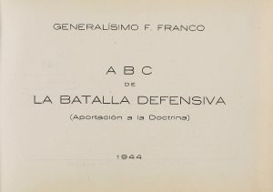 1944. (FRANQUISMO-MILITARIA). FRANCO, FRANCISCO: ABC DE LA BATALLA DEFENSIVA (Aportación a la doctrina). Madrid: Imp. del servicio Geografico del Ejercito, 1944. 12º apaisado. 102 p., varias láms. litográficas. Enc. en plena piel, título...