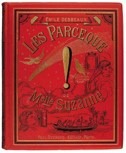 Idem, 1894. 4º. Enc. en tela editorial decorada. [Más:] DESBEAUX: LES PARCE QUE DE MADEMOISELLE SUZANNE. Paris: Ducrocq, 1885. 4º mayor. Enc. en tela editorial ilustrada.