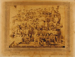 1896. PERSONAL DE LA FABRICA DE CLAVOS DE F. DE ECHEVARRIA ´BILBAO´ ABRIL 9-1896. Albúmina sobre cartoné litográfico, 17,5 x 23 cm. Fotografía del Centro Artístico de Barcelona.