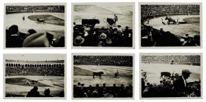 1920 ca. (TAUROMAQUIA). CONJUNTO DE 6 FOTOGRAFÍAS DE UNA CORRIDA DE TOROS. Fotografías de pequeñas dimensiones, 4x5,5 cm.