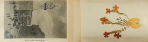 1920 ca. SOUVENIR ALBUM PHOTOGRTAPHE FLOWERS FROM THE HOLY LAND. FLEURS DE TERRE SAINT. 10 fotografías de Jerusalén 8 x 13,5 cm. Montadas en hojas de cartoné y encuadernadas en media tela. Cada una de las hojas tiene una planta disecada original...