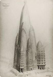1980 ca. (GAUDI-MODERNISMO). CATALA-ROCA, FRANCESC: CONJUNTO DE 5 IMAGENES DE DISEÑOS DE GAUDI, ENTRE ELLOS EL DE UN INTERESANTE PROYECTO DE HOTEL EN NEW YORK REALIZADO EN 1908 Y UNA IMAGEN DE LA BOLSA DE AMSTERDAM, INSPIRADA EN LA ARQUITECTURA DE...