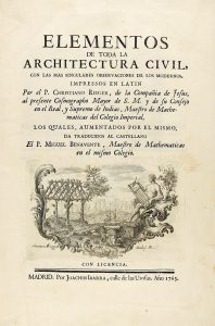 1763. (ARQUITECTURA). RIEGER, CHISTIANO: ELEMENTOS DE TODA LA ARCHUITECTURA CIVIL. Madrid: por Joachin Ibarra, 1763. 4º mayor. 18 p. + 304 p.+ 8 p. 21 láminas plegadas de grabados calcográficos firmadas ´Andres Fernandez Pensionado lo dibuxa,...