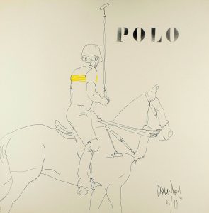 1974. (BIBLIOFILIA). JESUS, RAMON: POLO. Barcelona: Mercurio, 1974. Folio mayor cuadrado. 9 dibujos, con otras tantas h. de texto. Presentados en estuche en tela. Edición numerada de 99 ejemplares.