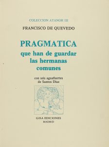 1976 ca. (BIBLIOFILIA-EROTICA). QUEVEDO, FRANCISCO DE; DIAZ, SANTOS [ilustrador]: Madrid: Gisa Ediciones, sa. 4º mayor. Ilustrado con seis aguafuertes de Santos Diaz. Ejemplar en rama con cubiertas en rústica. Edición numerada y limitada a 250...