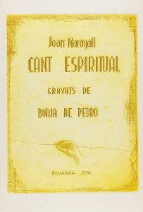 1986. (BIBLIOFILIA). MARAGALL, JOAN; PEDRO, BORJA DE [grabados]: CANT ESPIRITUAL. Barcelona: 1986. 24 h., todas grabadas al aguatinta que contienen alternativamente texto e ilustraciones. Grueso papel de hilo en rama con cubiertas del mismo material...