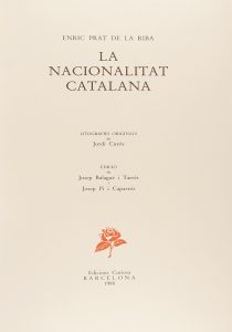 1988. (BIBLIOGRAFIA). PRAT DE LA RIBA, ENRIC; CUROS, JORDI [ilustrador]: LA NACIONALITAT CATALANA. Barcelona: Ed. Curiosa, 1988. Folio. 93 p. Ilustrado con láminas a color de Curós firmadas por el artista. Papel de hilo con barbas. Enc. en media...