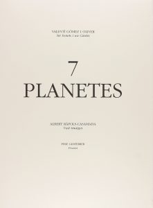 1997. (BIBLIOFILIA). GOMEZ I OLIVER, VALENTI; RAFOLS CASAMADA, RAFOLS: 7 PLANETES. Proemio de Pere Gimferrer. S.l.: Ediciones Mercart, 1997. Folio mayor. 80 p. aprox. de grueso papel de hilo con barba. Libro de bibliófilo con 8 poemas en catalán...