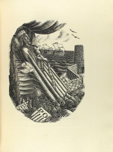 1950. (BIBLIOFILIA-POBLET). RICART, E.C. (Ilustr.):. ANTOLOGIA LIRICA DE POBLET. Barcelona: Torrell de Reus, 1950. 4º mayor. 189 p., 3 h. Ejemplar estampado en pergamino. Ilustr. con xilografías de E.C. Ricart. Ejemplar en rama con carpeta en tela...