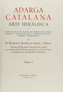 1954. (HERALDICA). GARMA Y DURAN, FRANCISCO XAVIER: ADARGA CATALANA. ARTE HERALDICA Y PRACTICAS REGLAS DEL BLASON, CON EJEMPLO DE LAS PIEZAS, ESMALTES Y ORNATOS DE QUE SE COMPONE UN ESCUDO, INTERIOR Y EXTERIORMENTE. Barcelona: Edit. Orbis, 1954. 3...