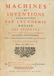1735. (CIENCIAS). GALLON: MACHINES ET INVENTIONS APPROUVEES PAR L´ACADEMIE ROYALE DES SCIENCES DEPUIS SON ETABLISSEMENT. Paris: chez Gabriel Martin, Jean-Baptiste Coignard, Hippolyte-Louis Guerin, 1735. 6 vols. en 4º menor. I: 215 p.; II: V + 1 h....