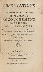 1770. (GINECOLOGIA). LEVRET, M. A.: OBSERVATIONS SUR LES CAUSES ET LES ACCIDENS DE PLUSIEURS ACCOUCHEMENS LABORIEUX, AVEC DES REMARQUES. Paris: Imp. Fr. Didot le Jeune, 1770. 8º mayor. XXXV + 176 p + 527 p. y 3 lám. plegadas. Texto con apostillas...