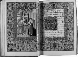 1993. (FACSIMIL). LIBRO DE HORAS DE LA CASA DE DOS AGUAS. (El manuscrito 103-V1-3 de la Biblioteca Bartolomé March de Mallorca). Bello facsímil en 8º mayor. 300 h. aprox. Abund. de dorados. Enc. en tela sobre madera. Se acompaña del volumen de...