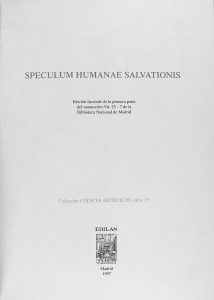 1997. (FACSIMIL). SPECULUM HUMANAE SALVATIONIS. Madrid: Edilan, 1997. 2 vols. en folio mayor. Vol. de facsímil, 43 fol. ilustr., enc. en plena piel gofadra; Vol. de estudios a cargo de Teresa Perez Higuera, enc. en media piel. Edición numerada de...
