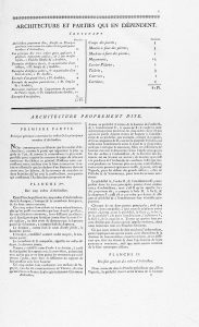 scier les Pierres, Maçonnerie, Carrier-Plâtrier, Tuilerie, Couvreur y Carreleur. Todas las láminas numeradas y de la primera parte de arquitectura faltan la 7, 20, 24, 27, 28, 29, 34, 36, 37 y 38. Algunas plegadas. Excelente estado de conservación, amplios márgenes, magnífico papel. Enc. en cartoné, papel al agua.