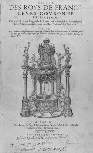1580. (FRANCIA-HISTORIA). TILLET, JEAN DU: RECUEIL DES ROYS DE FRANCE, LESURS COURONNE ET MAISON. Paris: Iaques du Puys, 1580. Folio menor. Portada con grabado xilográfico, 6 h., 471 p. + 13 h. [Sigue:] CHRONIQUE ABBREGEE DES FAICTS ET GESTES...