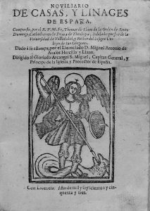 1653. (HISTORIA DE ESPAÑA). LLANO, THOMAS DE: NOVILIARIO DE CASAS, Y LINAGES DE ESPAÑA. S.l.: Miguel Antonio de Aualos Hercilla y Llano, 1653. 8º mayor. 20 h. + 47 fol. (46 reales, por error de paginación pero texto completo). Grabado en la...