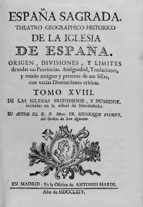 1765. (HISTORIA DE ESPAÑA-GALICIA). FLOREZ, HENRIQUE: ESPAÑA SAGRADA. THEATRO GEOGRAPHICO-HISTORICO DE LA IGLESIA DE ESPAÑA. ORIGEN, DIVISIONES, Y LIMITES DE TODAS SUS PROVINCIAS. TOMO XVIII DE LAS IGLESIAS BRITONIENSE, Y DUMIENSE,. Madrid:...