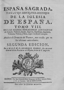 Palencia, Setabi, Segovia, Segobriga, Segoncia, Valencia, Valeria y Urci. Madrid: Oficina de Antonio Sanz, 1769. 8º mayor. 4 h. + 651 p., 2 láms. (una plegada). Texto a dos columnas. Enc. en pergamino, cortes pintados.