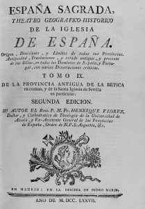 1777. (HISTORIA DE ESPAÑA-ANDALUCIA). FLOREZ, HENRIQUE: ESPAÑA SAGRADA. THEATRO GEOGRAPHICO-HISTORICO DE LA IGLESIA DE ESPAÑA. ORIGEN, DIVISIONES, Y LIMITES DE TODAS SUS PROVINCIAS. TOMO IX DE LA PROVINCIA ANTIGUA DE LA BETICA. Madrid: Oficina de...