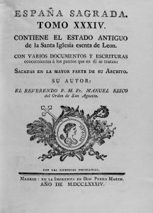 1784. (HISTORIA DE ESPAÑA-LEON). RISCO, MANUEL: ESPAÑA SAGRADA. TOMO XXXIV. CONTIENE EL ESTADO ANTIGUO DE LA SANTA IGLESIA ESENTA DE LEON. Madrid: Oficina de Antonio de Sancha, 1784. 8º mayor. 14 h. + 492 p., 1 lám. grabada. Texto a dos...
