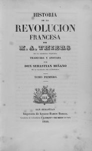 1840-1841. (HISTORIA-FRANCIA). THIERS, M.A.: HISTORIA DE LA REVOLUCION FRANCESA. Trad. Sebastian Miñano. San Sebastián: Imp. Ignacio Ramon Baroja, 1840-1841. 12 vol. 8º mayor. I: Un retrato, XXVIII + 458 p., 2 h. II: 1 h., 473 p., 2 h. III: 419...