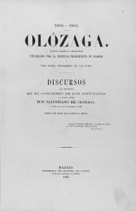 1863. (HISTORIA). OLOZAGA; FERNANDEZ DE LOS RIOS: DISCURSOS QUE PRONUNCIO EN EL CONGRESO DE LOS DIPUITADOS EL EXCMO. SR. DON SALUSTIANO DE OLOZAGA. Madrid: Imp. de Manuel de Rojas, 1863. Folio menor. 500p. Frontis. Láminas litográficas. Enc. en...