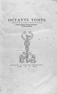 1529. (HUMANIDADES). SAN AGUSTIN: OCTAVUS TOMUS OPERUM DIVI AURELII AUGUSTINI HIPPONENESIS EPISCOPI, CONTINENS ENARRATIONES IN PSALMOS MYSTICOS. Basileae: in Officina Frobeniana, 1529. Folio. 1205 p. Señal de humedad, señal de polilla en las...