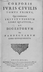 1681. (DERECHO). CORPORIS IURIS CIVILIS TOMUS PRIMUS quo continentur Institutionum libri quator, et Digestorum sive Pandectarum libri quinquaginta. TOMUS SECUNDUS quo continentur Iustiniani Codicis, libri XII, Authenticae..., Constitutiones...