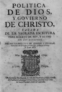 1729. (RELIGIO). QUEVEDO Y VILLEGAS, FRANCISCO DE: POLITICA DE DIOS , Y GOVIERNO DE CHRISTO, SACADA DE LA SAGRADA ESCRITURA PARA ACIERTO DE REY, Y REYNO EN SUS ACCIONES. Madrid: Imp. Pedro Joseph Alonso de Padilla, 1729. 8º mayor. 12 h. + 295 p....
