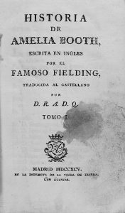 1795. (BIOGRAFIA). FIELDING, H.: HISTORIA DE AMELIA BOOTH. Madrid: Imp. de la Viuda de Ibarra, 1795. 5 vol. 8º menor. I: 4 h. + 336 p. II: 5 h. + 276 p. III: 3 h. + 370 p. IV: 1 h. + 350 p. V: 1 h. + 389 p. Cinco vol. enc. en pasta española,...