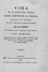 1804. (HAGIOGRAFIA). CASTAÑIZA, JUAN DE: VIDA DE LA PRODIGIOSA VIRGEN SANTA GERTRUDIS LA MAGNA, ABADESA DE EISLEBIO EN EL CONDADO MASFELDENSE DE LA ORDEN DEL GLORIOSO PADRE Y PATRIARCA DE LOS MONGES SAN BENITO. Madrid: Imp. Administración del Real...