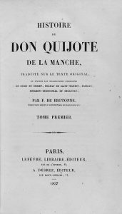 1837. (CERVANTINA). CERVANTES SAAVEDRA, MIGUEL DE: HISTOIRE DE DON QUIJOTE DE LA MANCHE, traduite sur le texte original... par F. De Brotonne. París: Libr. Edit. Lefèvre, 1837. 2 vols. en 8º mayor. I: VI + 480 p., 1 retrato ; II: 524 p. Enc. en...