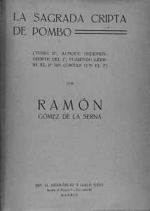 1926. (VANGUARDIAS-1ª EDICION). GOMEZ DE LA SERNA, RAMON:. LA SAGRADA CRIPTA DEL POMBO… POR…. Madrid: Imp. G. Hernandez y Galo Saez, 1926. 4º menor. 562 p. Ilustraciones dentro de texto. Rústicas levemente deslucidas.
