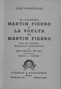 1950. (LITERATURA). HERNANDEZ, JOSE: EL GAUCHO MARTIN FIERRO Y A VUELTA DE MARTIN FIERRO. Buenos Aires: Libr. Edit. El Ateneo, 1950. 4º menor. 239 p. Ilustr. con dibujos en el texto por Maria A. Ciordia. Enc. en plena piel vacuna con una ilustr....