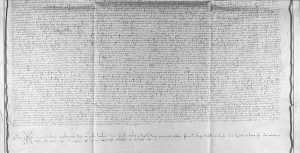 1421. (BARCELONA). POSESION DADA POR SERENA, MUGER DE GALCERAN DE GUALBES A BERNAT ESPLUGUES. Manuscrito sobre pergamino, 81 x 64 cm. Faltas en una esquina que afecta las primeras líneas del documento por ambos márgenes. Dado en Barcelona, 1421.