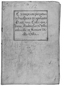 1618. (FIRMA REAL-PERGAMINO). EXCEPCION PERPETUA DE HUESPEDES DE APOSENTO PARA UNA CASA QUE TIENE AMBROSIO DE VILLA EN LA CALLE DE FRANCOS DE ESTA VILLA. Madrid. 6 fol. en pergamino, manuscritos con una bella caligrafía gótica y enmarcada. Letras...