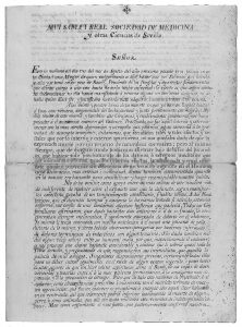 1792. (MEDICINA). BARTHOLOME RODRIGUEZ, MARCOS: CARTA A LA SOCIEDAD DE MEDICINA Y OTRAS CIENCIAS DE SEVILLA. 4 fol. manuscritos que son una carta dirigida a la sociedad sevillana de medicina fechada y firmada en Jaén el 6 de noviembre de 1792. En...
