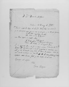 1885. VERDAGUER, JACINTO: CARTA DE JACINT VERDAGUER DIRIGIDA A FRANCESCH MASFERRER. Manuscrito en octavilla. Con correccciones y versos anotados por Verdaguer para corregir una prueba de sus textos que iban a ser publicados.