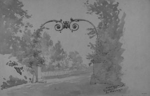 1885. SOLER ROVIROSA, FRANCESC: ENTRADA DE LE BOCAGE EN GINEBRA, SUIZA. Aguada y tinta sobre papel. 14 x 22,5 cm.