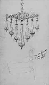 1897. SOLER ROVIROSA, FRANCESC: LAMPARA DEL ALTAR MAYOR DEL DUOMO DE MILAN. Lapiz y aguada sobre cartoné. 20 x 12 cm.