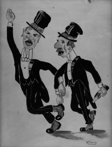 1900 ca. SERRA, M.: DOS BORRACHOS. Original artísitico, tinta y aguada, 22 x 17 cm.