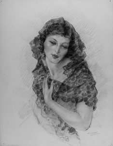 1950 ca. CHIMOT: RETRATO FEMENINO. Carboncillo y lápiz de color. 28 x 22 cm.