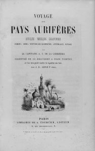 época en tela con lomo decorado. Cortes dorados. Papel levemente oscurecido. Durante sus posibles imaginados viajes La Carrieres visitó San Francisco yu su región. Describe varios grupos étnicos, la violencia que se utilizaa de forma generalizada, viajó también a San José (cuándo esta población era la fortaleza de la zona), , las minas del sur alrededor de Mariposa, ... en este periplo La Carrieres describe las diferentes sociedades, mexicanos, franceses, las técnicas que utilizaban, las mujeres, ..También hacre descripciones de Nueza Zelanda y Australia. Cowan II, p. 19; Howes L5; Kurutz, The California Gold Rush 386; Palau 129302; Sabin 38450.