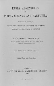 1887. (GEOGRAFIA-VIAJES-PROXIMO ORIENTE). LAYARD, HENRY: EARLY ADVENTURES IN PERSIA, SUSIANA, AND BABYLONIA. London: JMohn Murray, 1887. 8º. mayor. 490 p. Frontis litográfico a color, láminas de grabados y un mapa plegado. Enc. en plena piel con...
