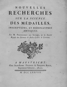 1778. (NUMISMATICA). POINSINET DE SIVRY, M.: NOUVELLES RECHERCHES SUR LA SCIENCE DES MEDAILLES, INSCRIPTIONS, ET HIEROGLYPHES ANTIQUES. Maestricht: chez Jean-Edme Dufour & Philippe Roux, 1778. 4º. VI + 191 p. (varias de ellas plegadas) y 6 láms....