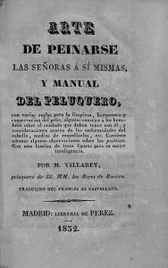 1832. (PELUQUERIA). VILLARET, M.: ARTE DE PEINARSE LAS SEÑORAS A SÍ MISMAS, Y MANUAL DEL PELUQUERO. Con varias reglas para la limpieza, hermosura y conservacon del pelo... Traducido del francés al castellano. Madrid: Lib. Pérez, 1832. 8º. 151...