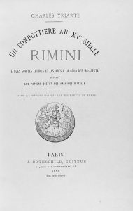 1882. (ENCUADERNACION). YRIARTE, CHARLES: UN CONDOTTIERE AU XV SIECLE. RIMINI. Etudes sur les lettres et les arts a la cour des Malatesta d´après les papiers d´État des Archives d´Italie. Paris: J. Rothschild, Ed., 1882. Folio menor. 200...