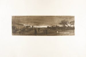 ca. 1908. (ARTE). BAROJA, RICARDO: PASEO DE ROSALES I CREPÚSCULO. 14 X 43 cm. Cobre, aguafuerte, aguatinta y punta seca. Medalla de primera clase en la Exposición Nacional de Bellas Artes de 1908. Lleva la firma del artista con las iniciales RB....